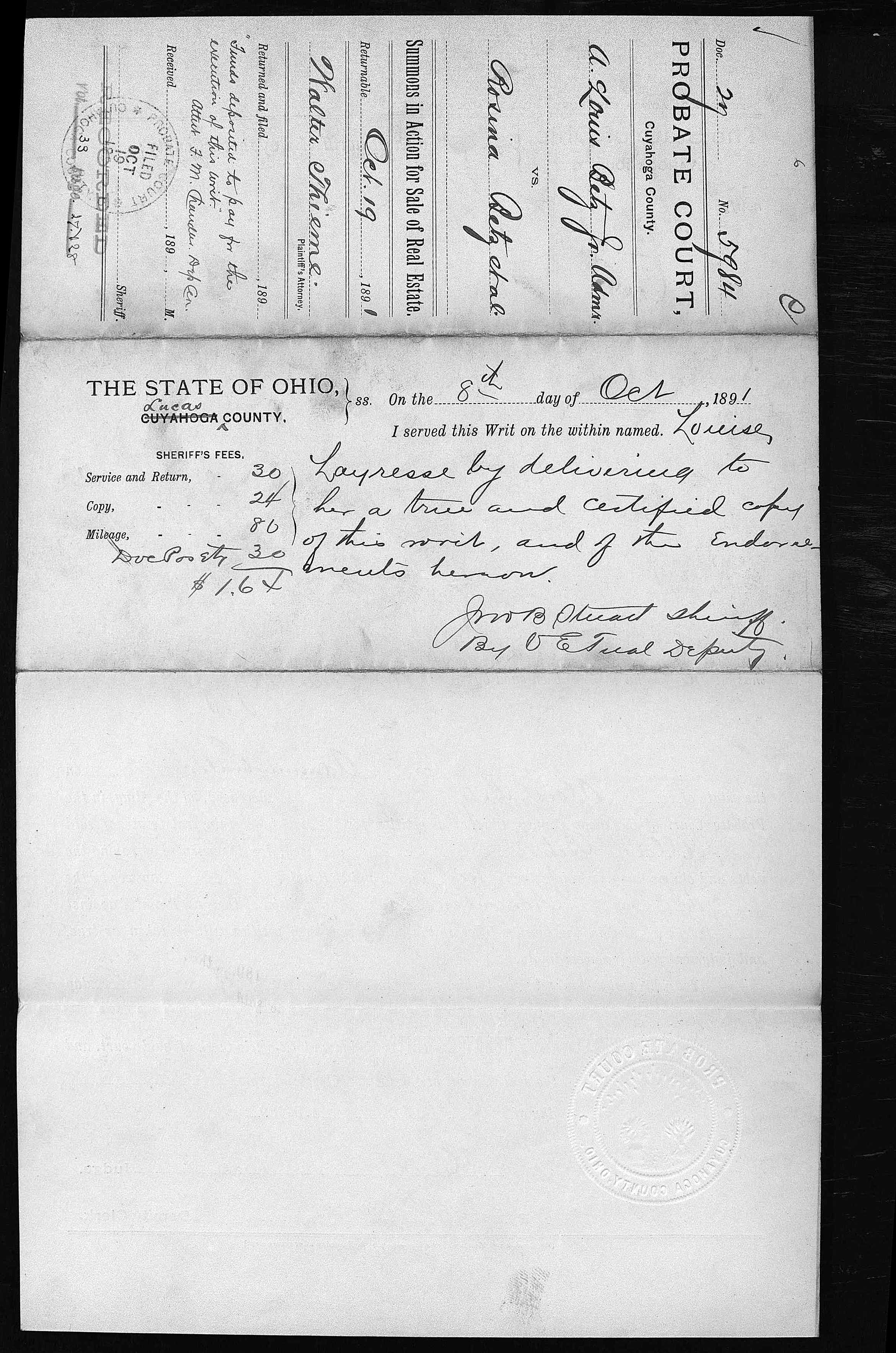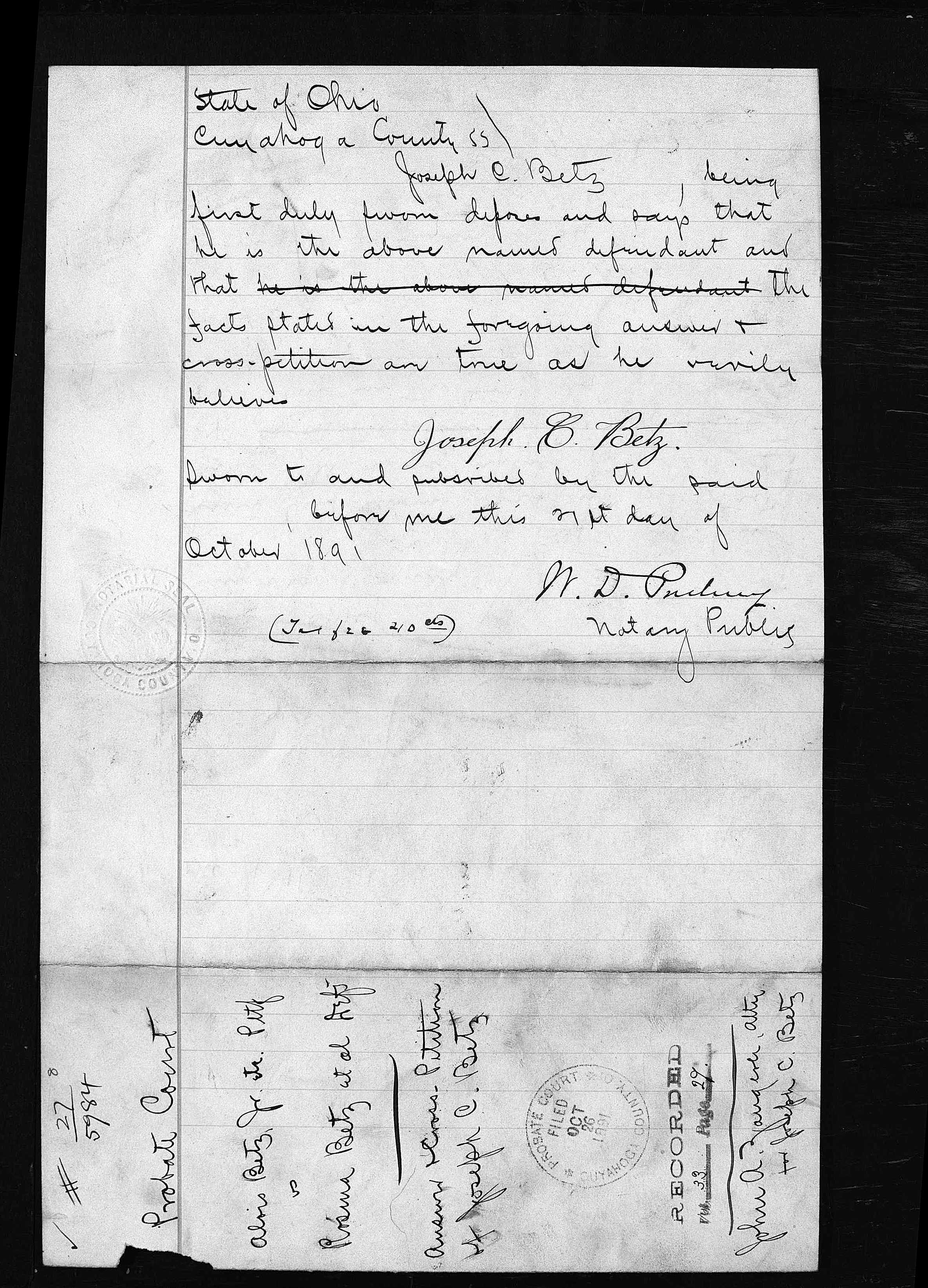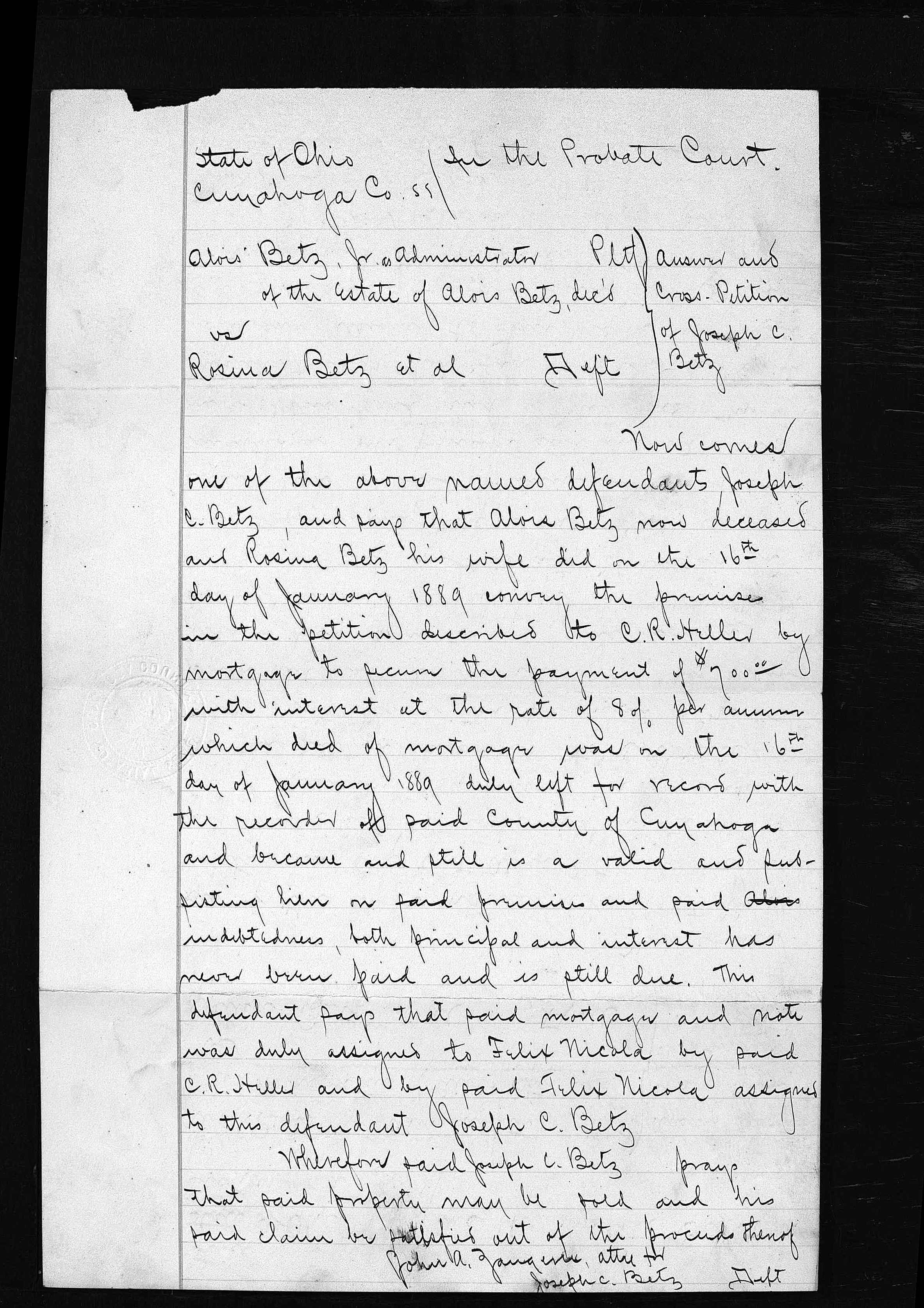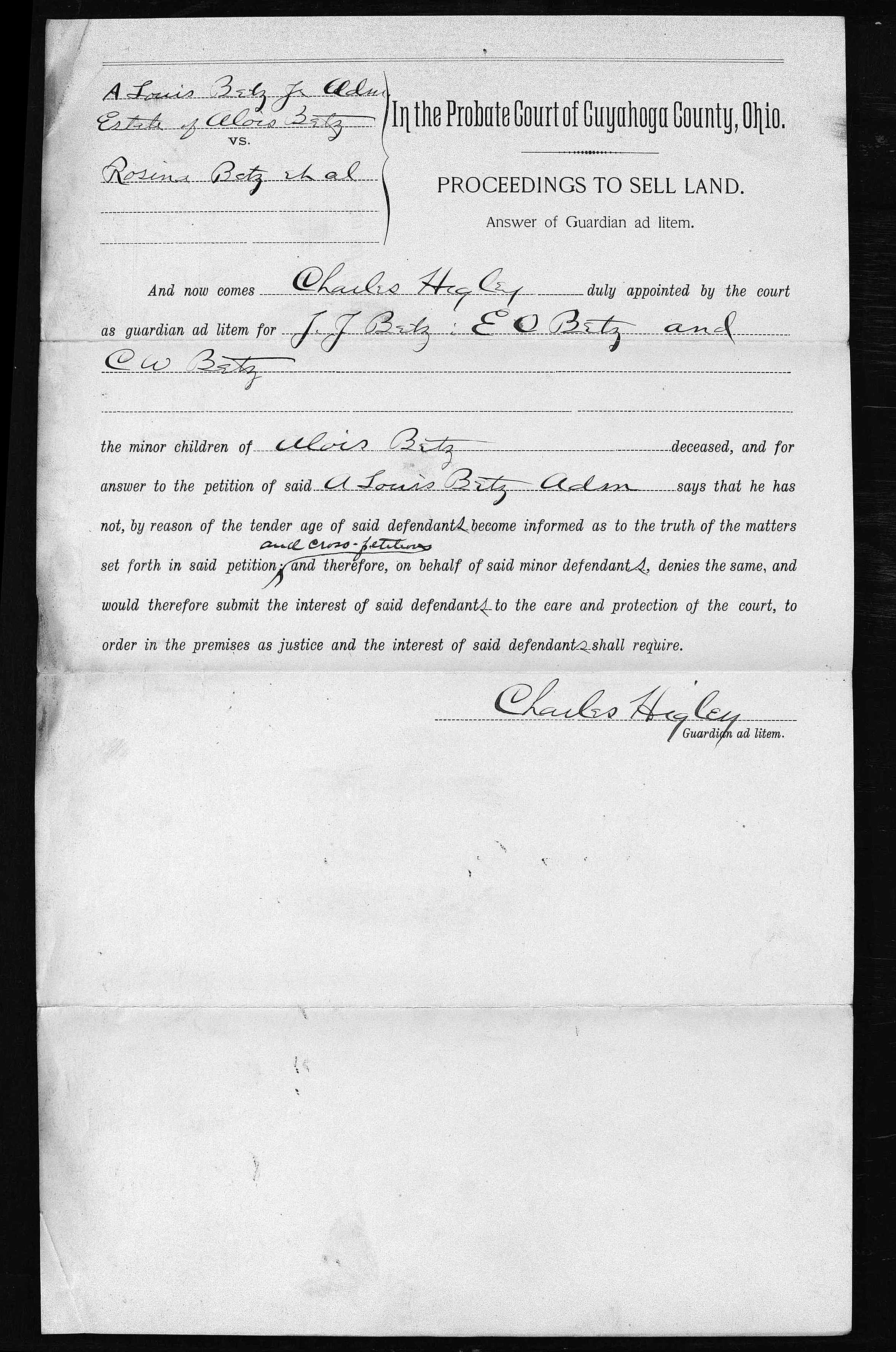 The album below contains the archived records of the Cuyahoga County Probate Court regarding the settlement of Alois Betz’s estate after his death in April of 1891. No interpretation or image processing has been done on these records. The file names reflect the case index number and page number, respectively. There are two cases represented here. I don’t know enough about the process to interpret them, other than to say that 5525 seems to be the general probate process, and 5984 relates specifically to the sale of the Marion Street residence.